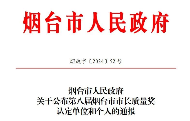煙臺市市長質量獎是煙臺市質量發展領域的最高獎項。該獎項每兩年評選一屆,評選數量少,評審程序嚴,社會認可度高,主要授予質量管理水平卓越、自主創新能力強、品牌知名度高、經濟效益和社會效益突出的單位,以及質量工作成效顯著、對促進煙臺市經濟社會發展作出突出貢獻的個人。