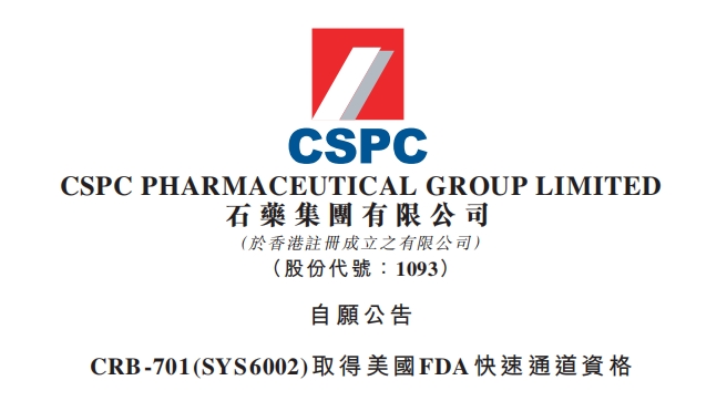12月4日,石藥集團宣布,本集團授權給Corbus Pharmaceuticals,Inc.開發的CRB-701(SYS6002) (下稱:該產品)獲得美國食品藥品監督管理局 (FDA)授予快速通道資格,用于治療復發或難治性轉移性宮頸癌 。
