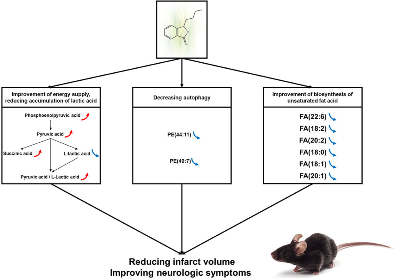 DL-3-正丁基苯酞(NBP)是一種從芹菜籽中提取的有效成分,已被證明在治療IS方面具有良好的臨床療效和安全性。前期研究表明,NBP在腦缺血再灌注過程中改善了線粒體功能。其他研究也闡釋其潛在機制包括減少神經血管炎癥、促進血管生成、抑制凋亡和自噬。然而,NBP對于腦缺血再灌注損傷中小分子代謝物空間分布影響的系統研究尚不多見。