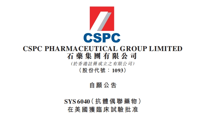 石藥集團(tuán)SYS6040(抗體偶聯(lián)藥物)在美國獲臨床試驗(yàn)批準(zhǔn)