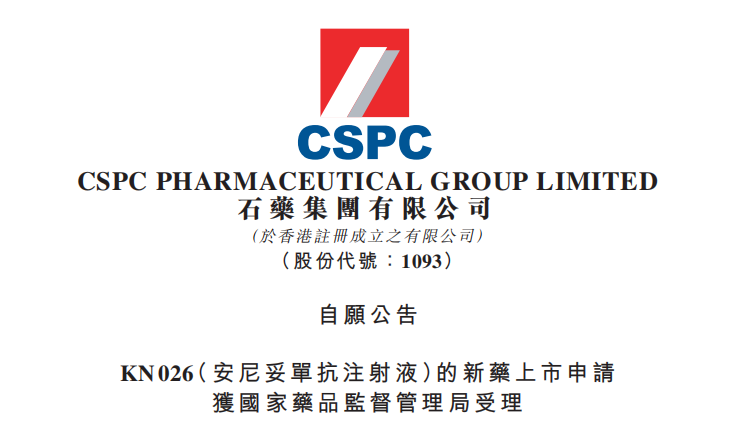 石藥集團(tuán)KN026(安尼妥單抗注射液)的新藥上市申請(qǐng)獲受理